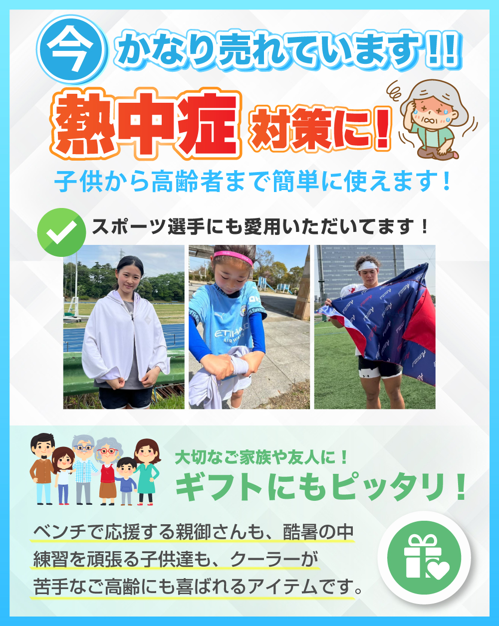 炎天下での活動やスポーツ後のクールダウン時にオススメ!