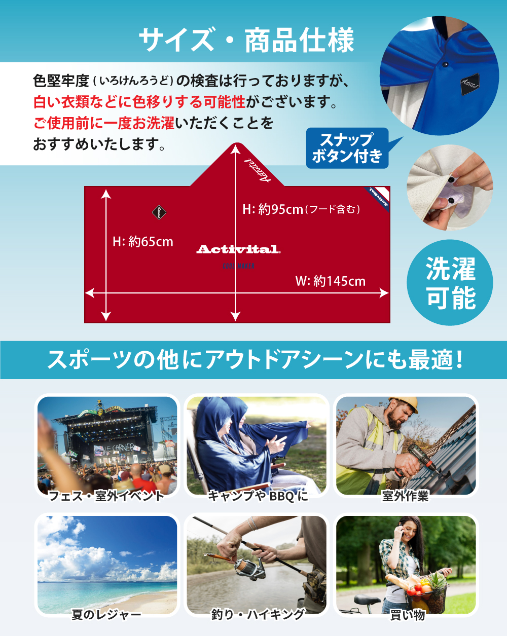 ホーム  / アクセサリー/小物  / 【EC限定】 Activital クールメイカー冷却ポンチョビッグ ブルー