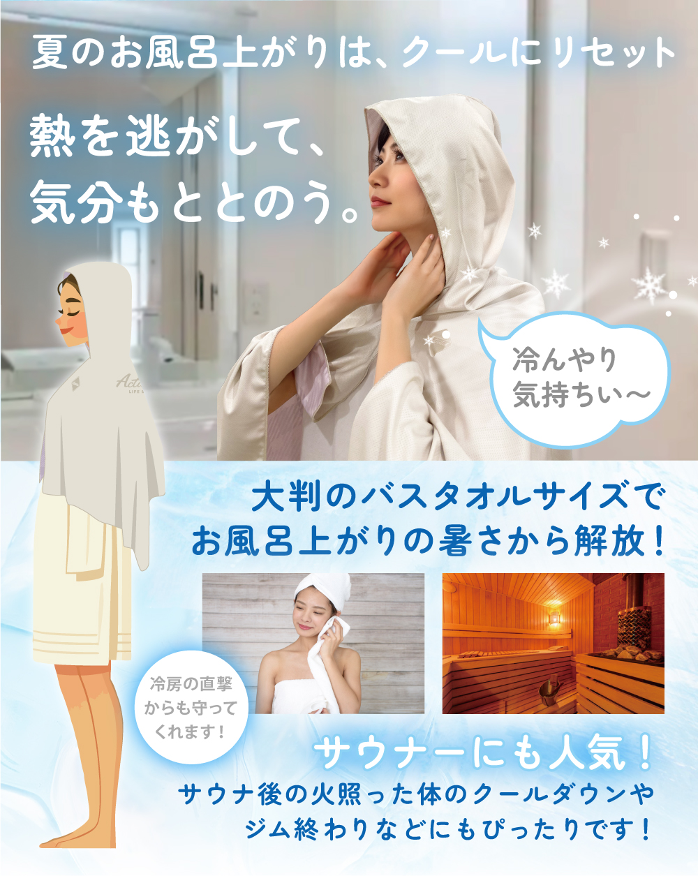 気化冷却涼感!肌温度-15℃の極冷感タオルポンチョ
