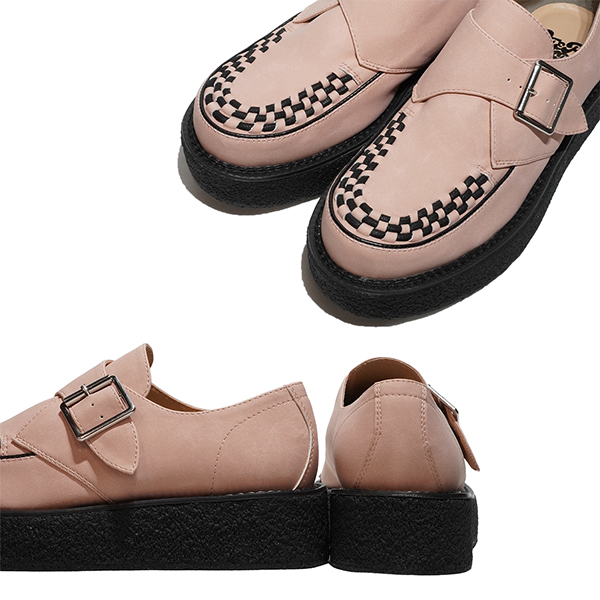 モンクストラップタイプ。定番のモンクストラップを再構築。シューズの構造上サイズの微調整が効きにくい為、返りの良い薄底のソールや、屈曲しやすい木型を使われる事が多いモンクストラップ。