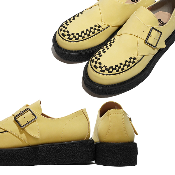 モンクストラップタイプ。定番のモンクストラップを再構築。シューズの構造上サイズの微調整が効きにくい為、返りの良い薄底のソールや、屈曲しやすい木型を使われる事が多いモンクストラップ。