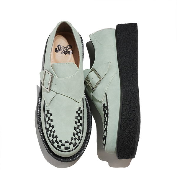 モンクストラップタイプ。定番のモンクストラップを再構築。シューズの構造上サイズの微調整が効きにくい為、返りの良い薄底のソールや、屈曲しやすい木型を使われる事が多いモンクストラップ。