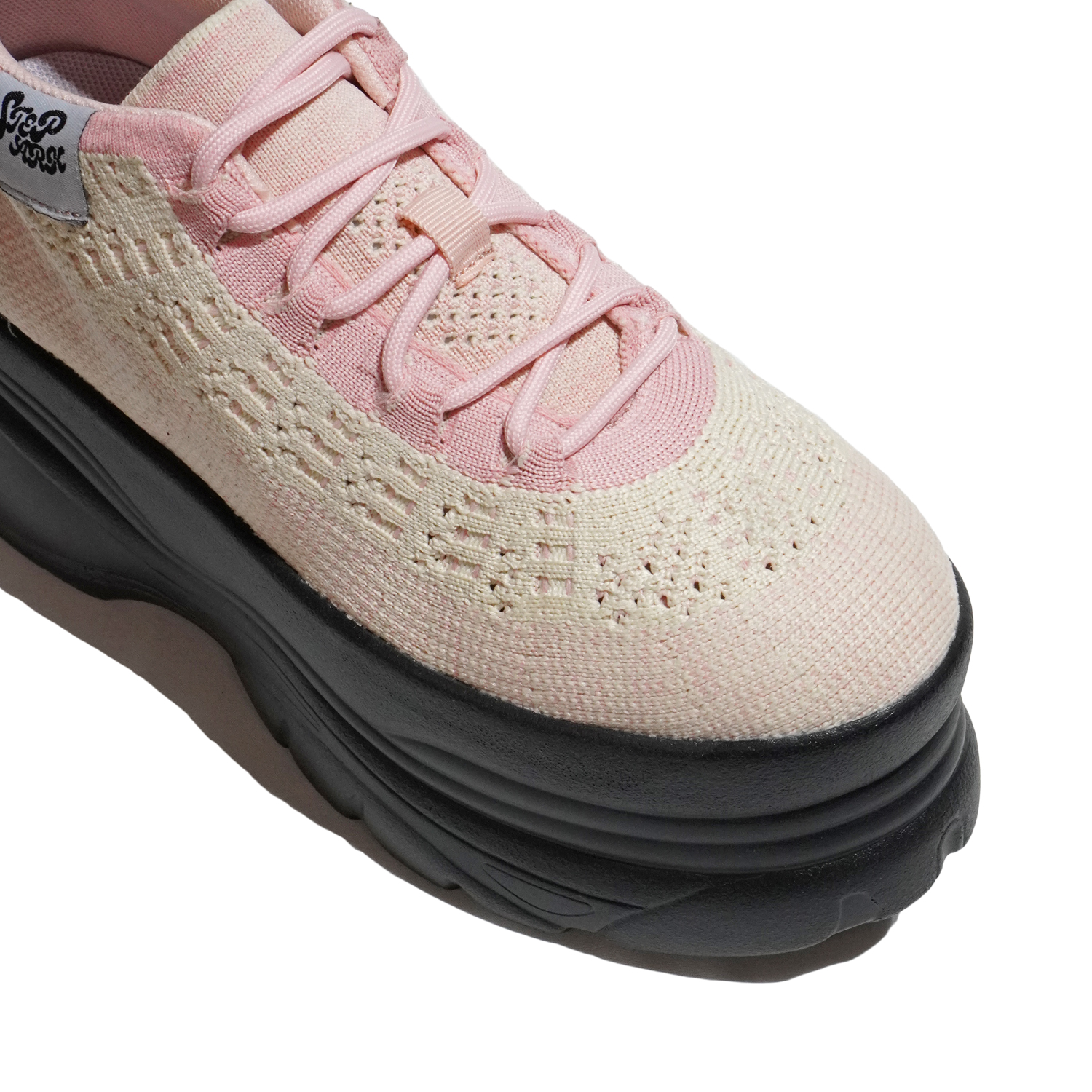 約9cmの厚底ソールが、自然にスタイルを引き立ててくれる。