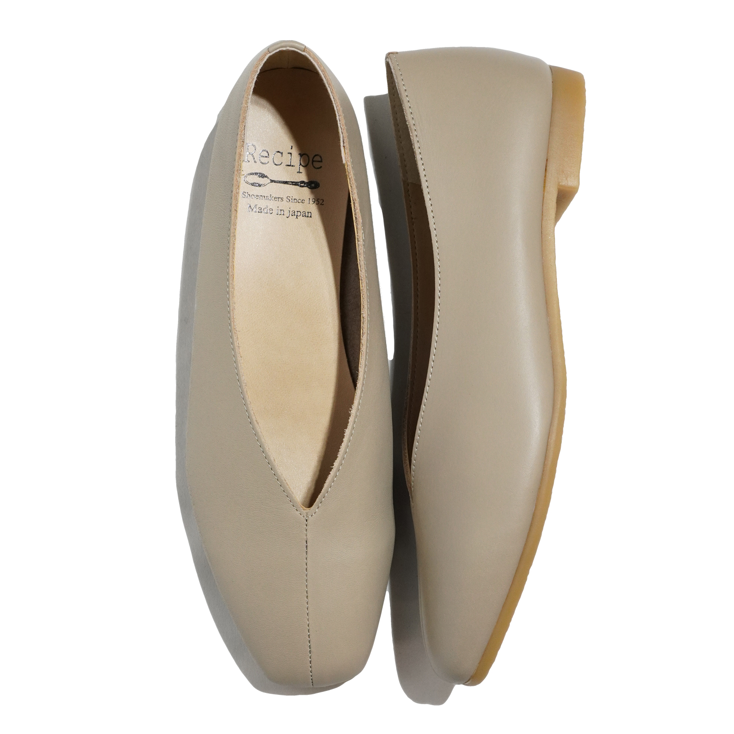 カットのトップラインが脚を美しく見せ、ヒール無しでも上品な印象に