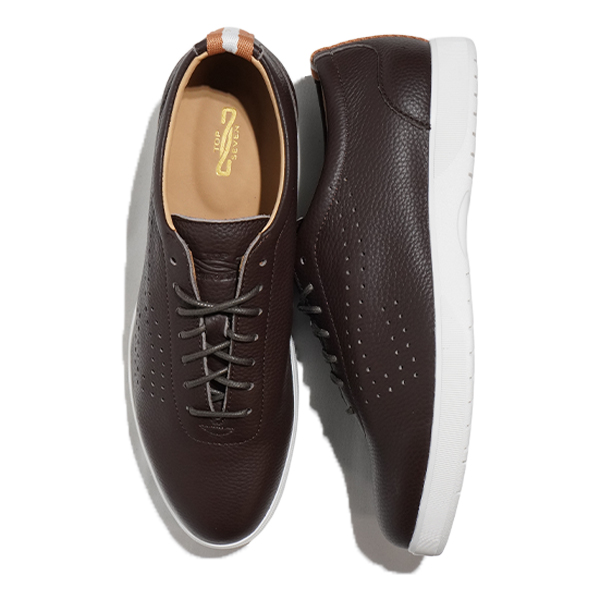 トップセブンの人気定番モデル【T7-At260-S】 は、“オーセンティックシリーズ”の代表的なモデル 。長年にわたって愛される理由は、そのミニマルな外観と汎用性。アッパーに上質なフルグレインレザーを1枚革で使用。ドレスシューズを思わせるスリムな木型から生まれたスマートなロングノーズが特徴で、大人スニーカーの教科書ともいえる王道のフォルムが人気の秘密です。