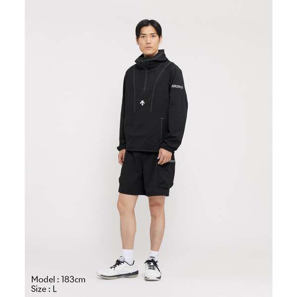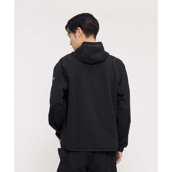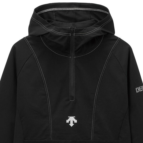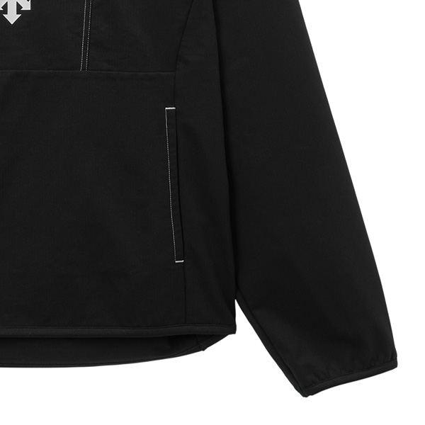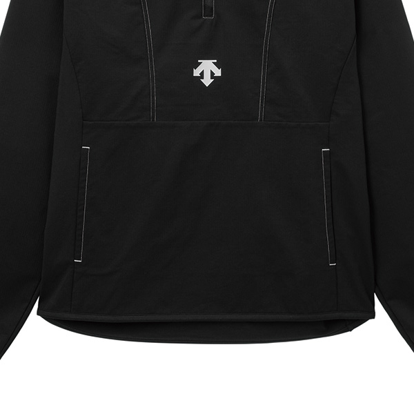 ストレッチ性・防風性・吸汗速乾の機能を備え持った生地を身頃に採用し、腹部には大きめのポケットを配置しています。