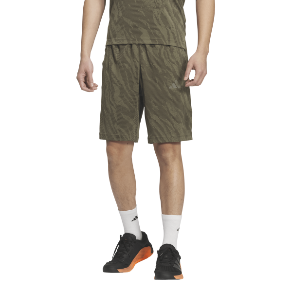 [adidas] テック-エッセンシャルズ クールタッチ レギュラーフィット-カモAOPショーツ【股下23cm(Lサイズ)】KF6135