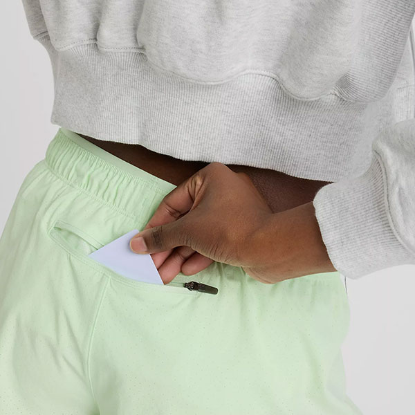 ウエスト後ろのジップポケット、内側に2つのドロップインポケット、内側だしのフラットなウエスト紐、リフレクトロゴプリント搭載。