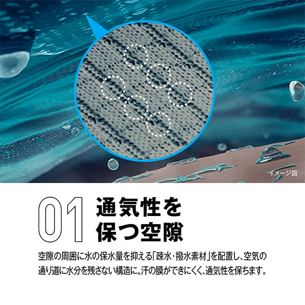 汗をかいた状態でも通気性を保ち、衣服内快適性をキープ!