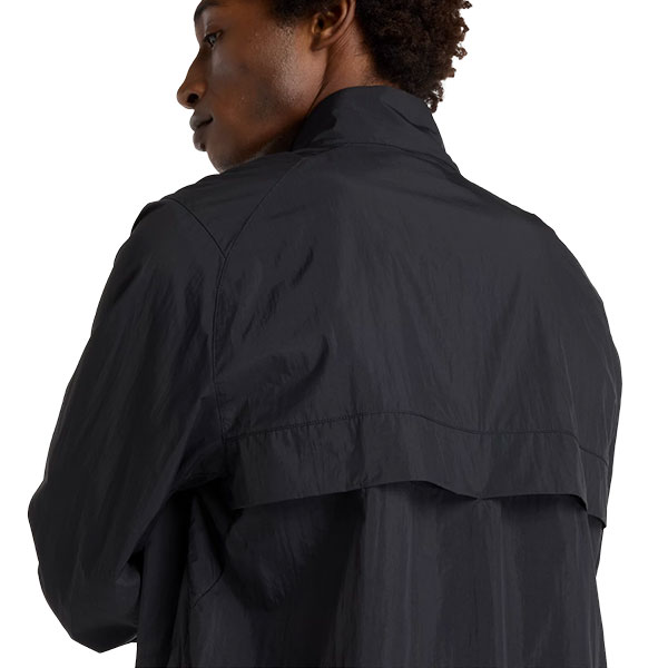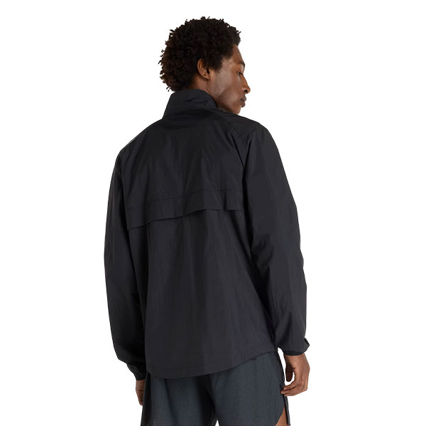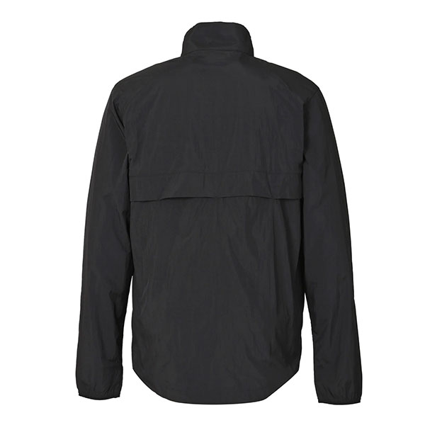 ポケットにパッカブルに収納できる軽量ポリエステル素材を使用したウーブンジャケット。