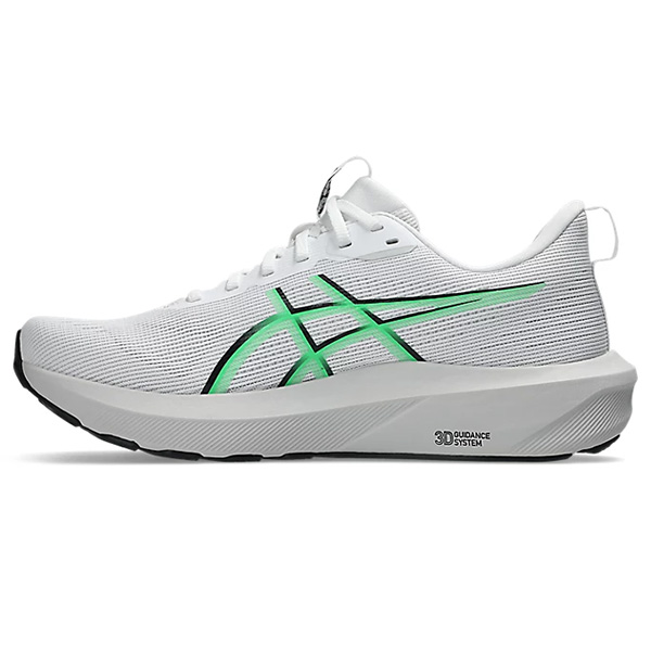 接地面を広くとったソール構造により、ねじれや内側への倒れ込みを抑制し、適切なかかとのポジションへの回復を促すとともに、次の一歩をスムーズにサポートする「3Dガイダンスシステム」を採用しています。