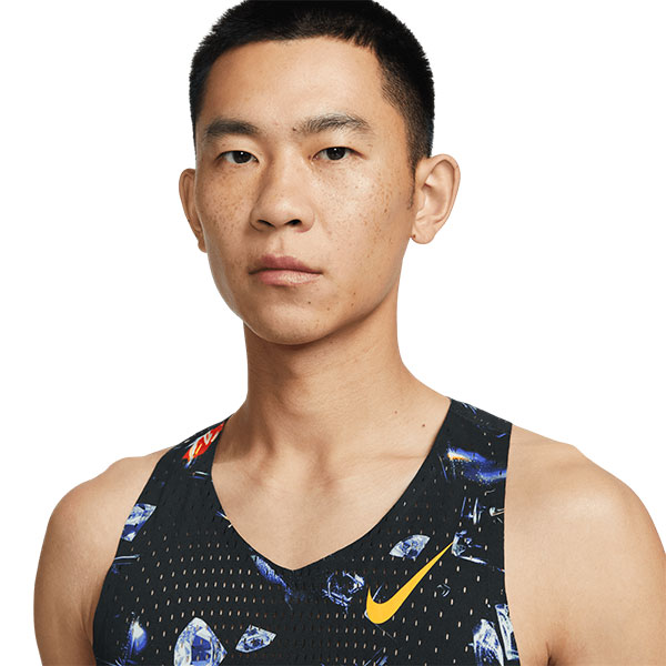 ダイヤモンドトロフィーにインスパイアされた、速乾性に優れたエンジニアードニットのシングレット。