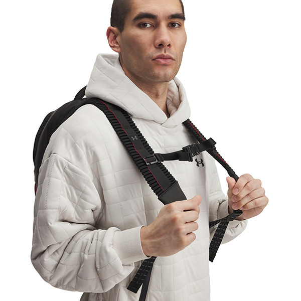 ●伸縮性のある重さを分散して肩にかかる負荷を軽減してくれるUA Suspension Strap