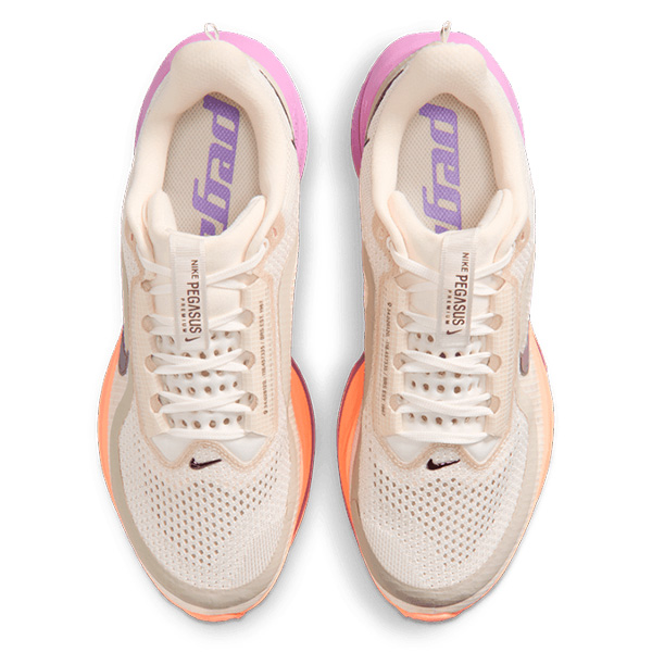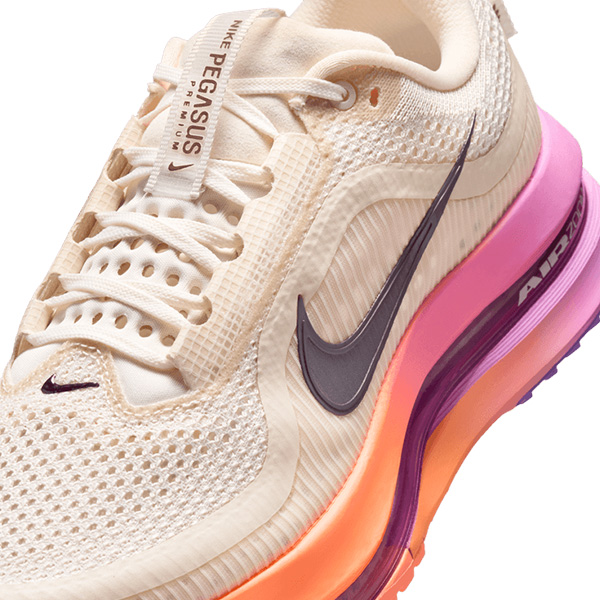 このペガサス プレミアムはZoomXフォーム、立体的なAir Zoomユニット、ReactXフォームという、Nikeで最もパワフルなランニングテクノロジーの3層構造を採用し、高反発のクッショニングを強化。