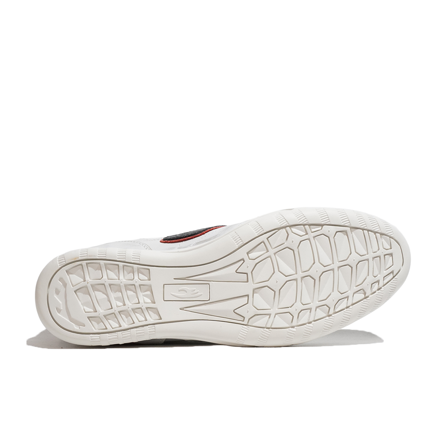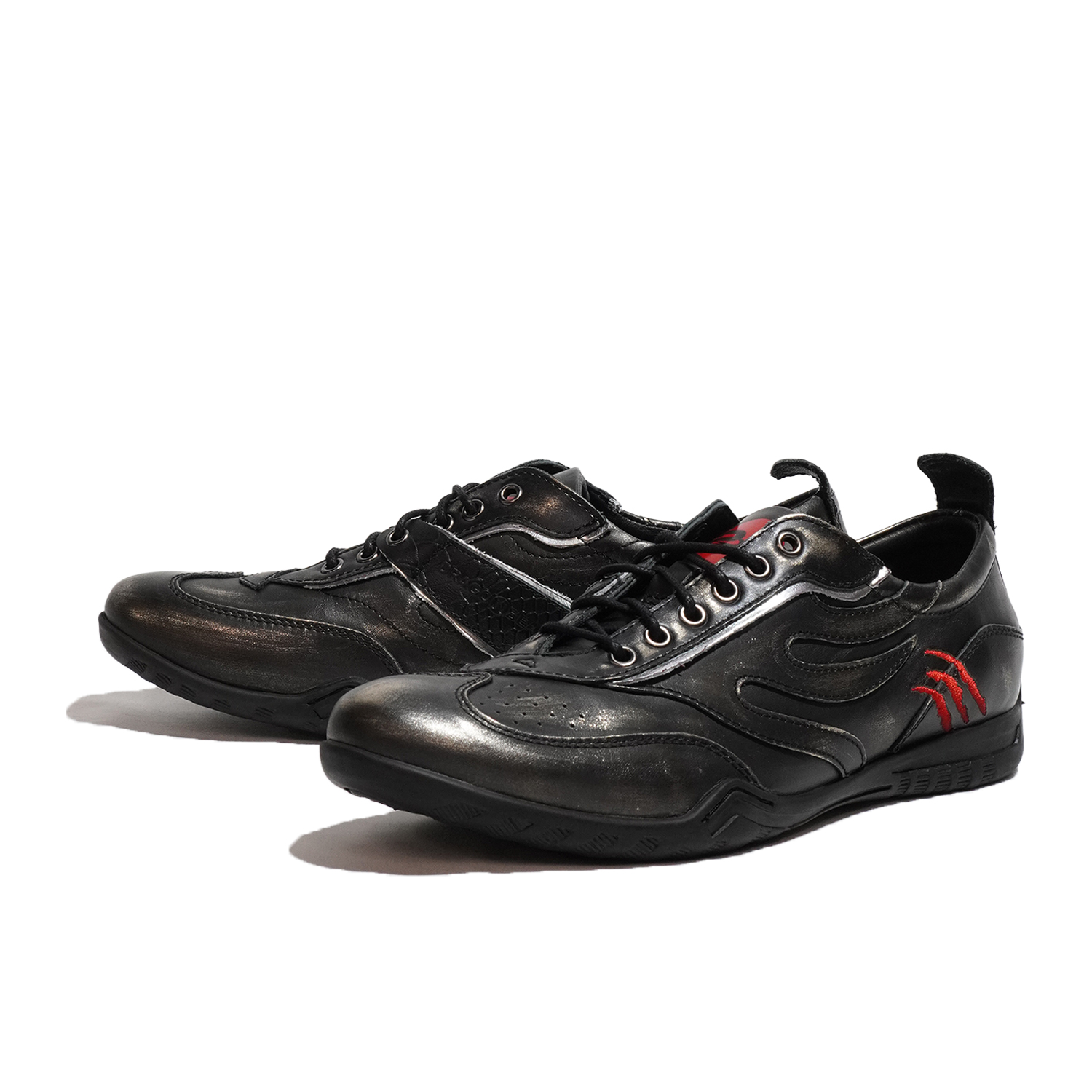 さらにサイドには、ブランドのアイコンである“爪痕”のような3本の赤い刺繍ラインを配置。 攻めたデザインの中に、ブランドの魂を宿した一足です。