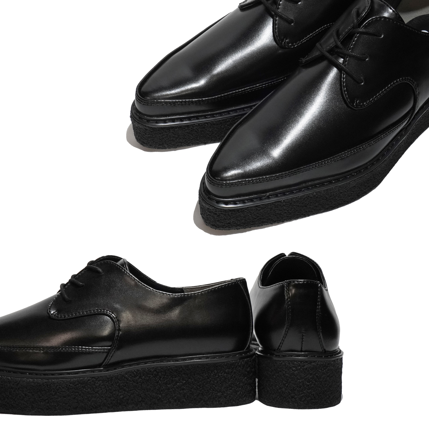 ヴィーガンレザーを使用したラバーソールシューズ。