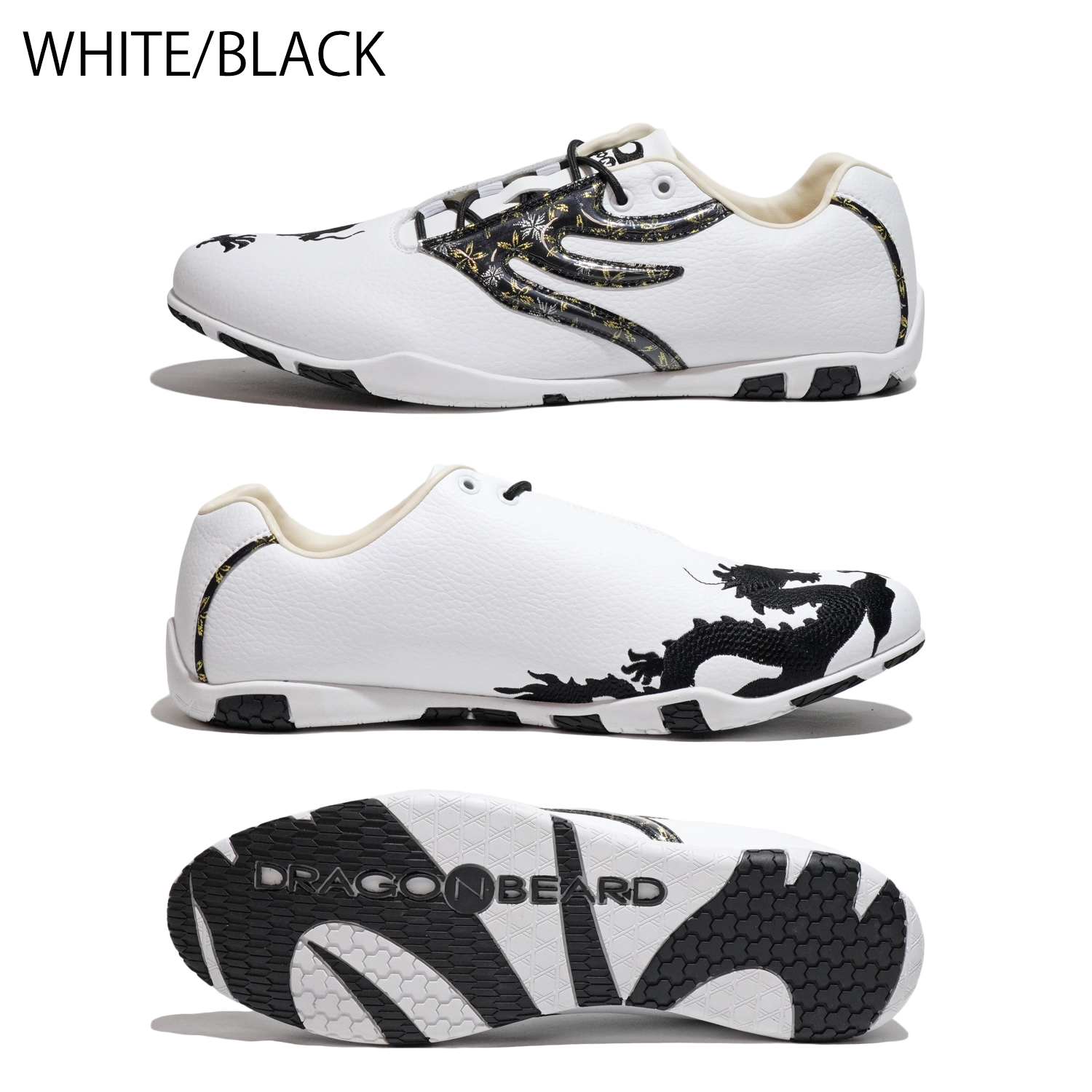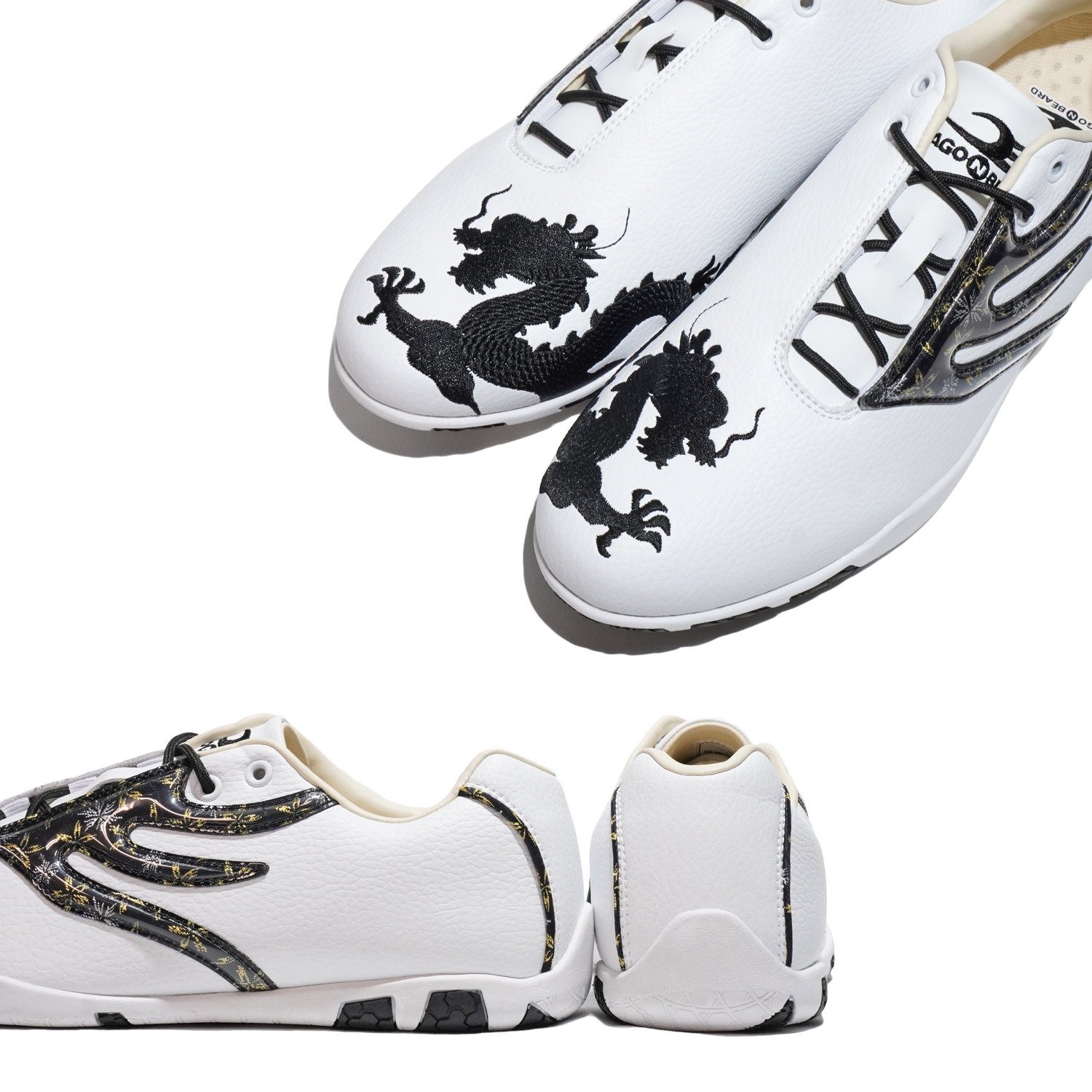 左右非対称のシューレースシステムの甲への負担を軽減する目的にドラゴンらしい派手で大胆な龍の刺繍に和柄にて人気を誇ったモデル。