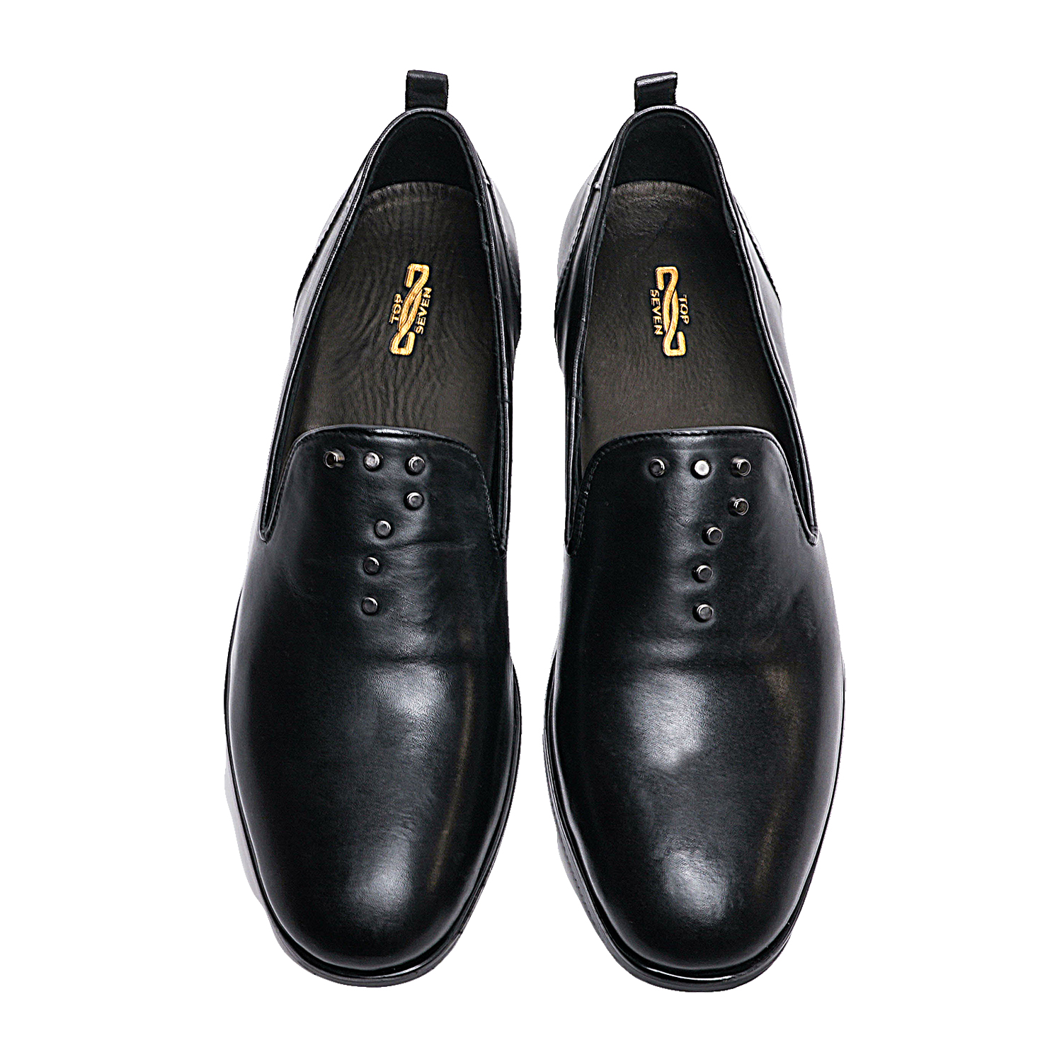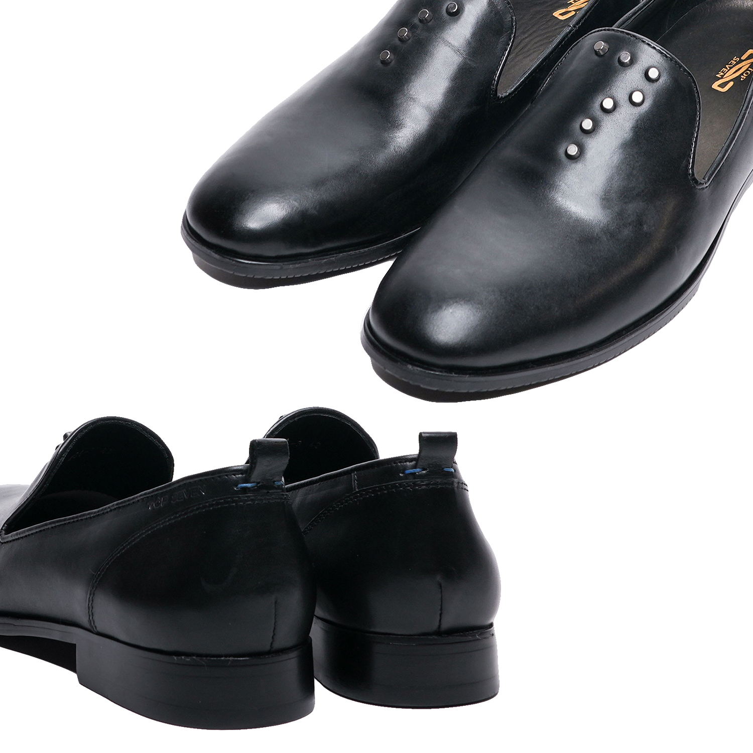 尚、上質なカウレザーを使用しシンプルながら上品な質感の甲部分に「7」のスタッズを施しブランドイメージを表現。