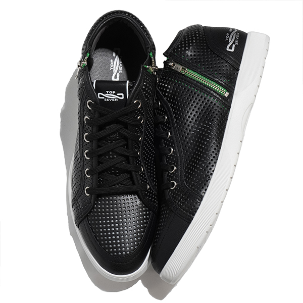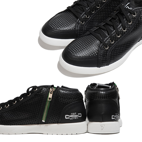 両サイドのジップは脱ぎ履きが楽なだけではなくアクセントとしても利いているモデルです。