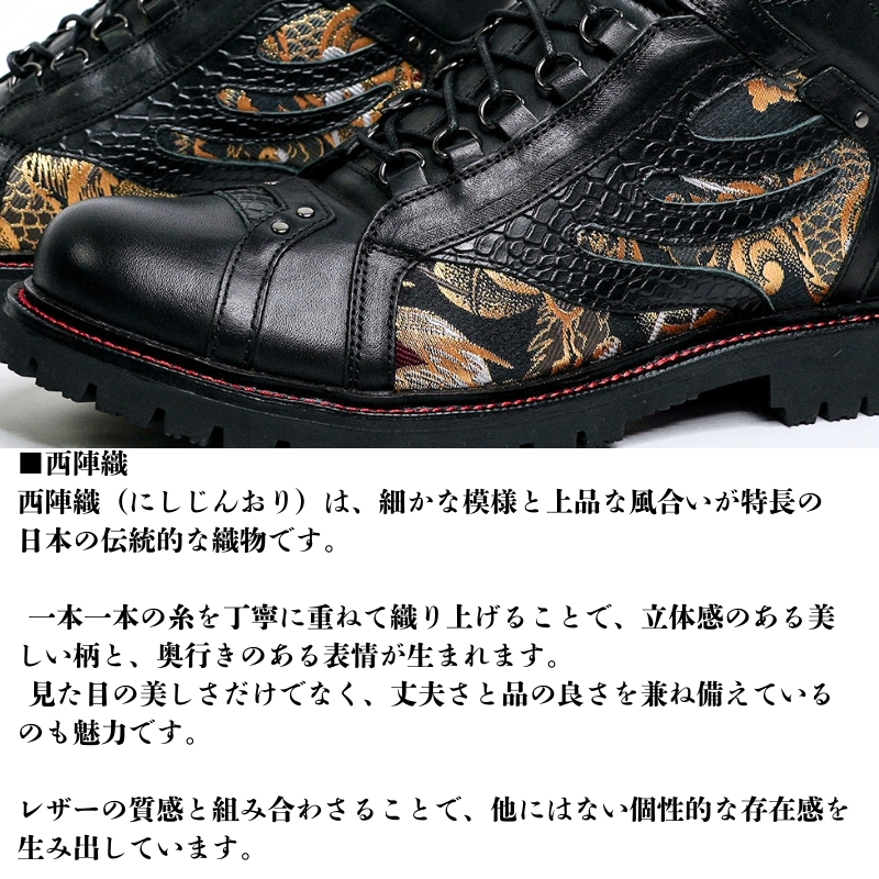 このモデルの大きな特徴は、日本の伝統美と現代的なブーツデザインを融合させていること。