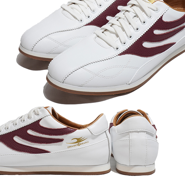 アイレットステイからつま先に伸びる、その両サイドには長めのラストをより綺麗に見せられる飾りステッチを設置しカジュアルでありながらスポーティー感を出している。