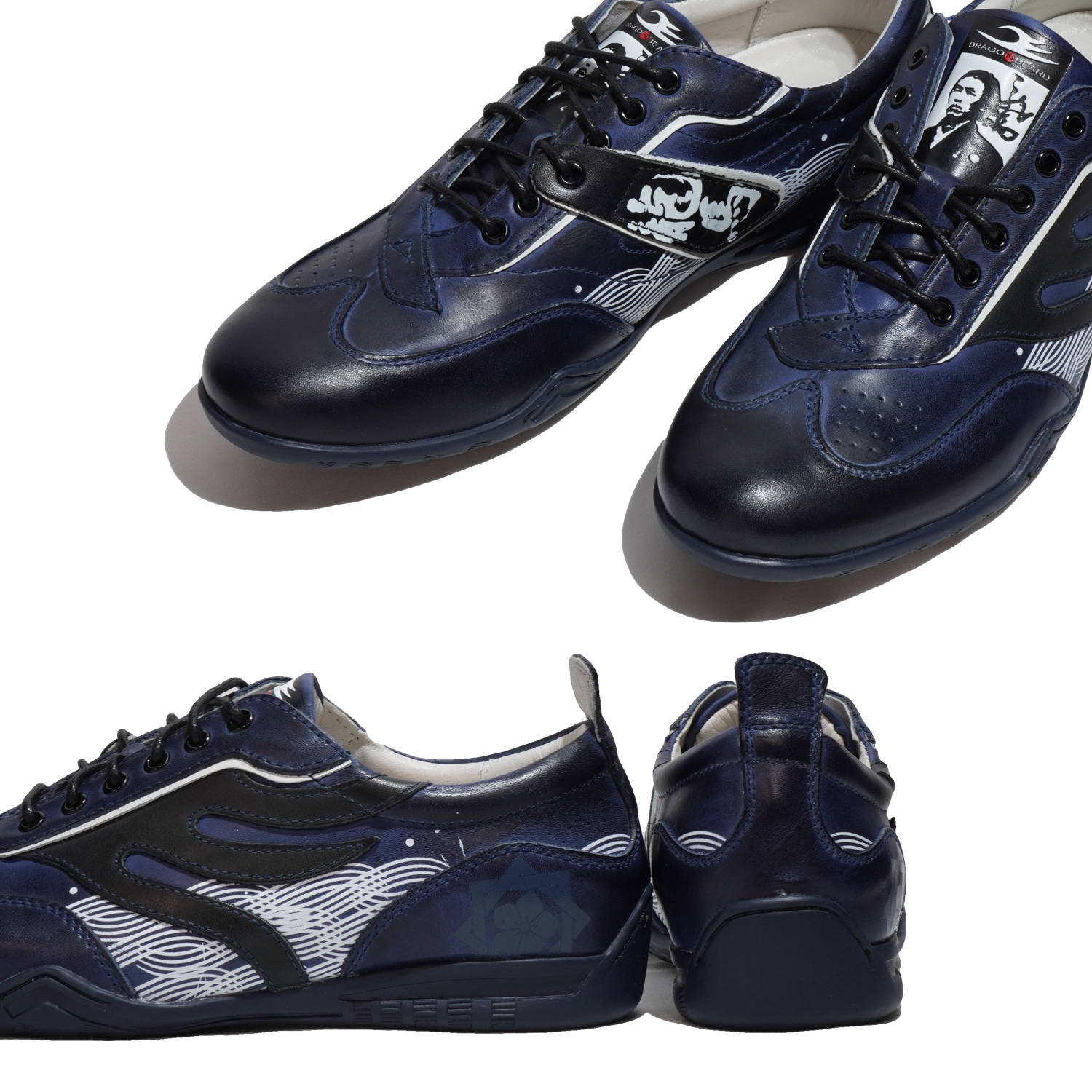 上質なカウレザーに今年は海援隊をイメージしたプリントを施したデザインは、歴史へのリスペクトと現代のスタイリッシュなアプローチを融合させたスニーカーです。