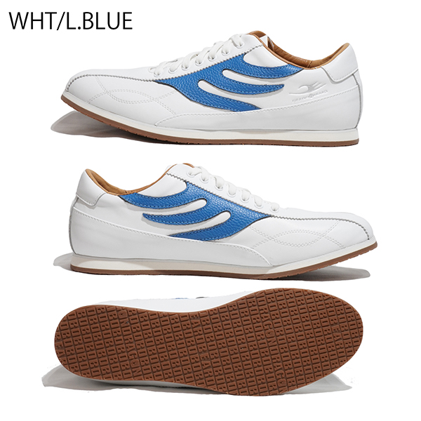 アイレットステイからつま先に伸びる、その両サイドには長めのラストをより綺麗に見せられる飾りステッチを設置しカジュアルでありながらスポーティー感を出している。