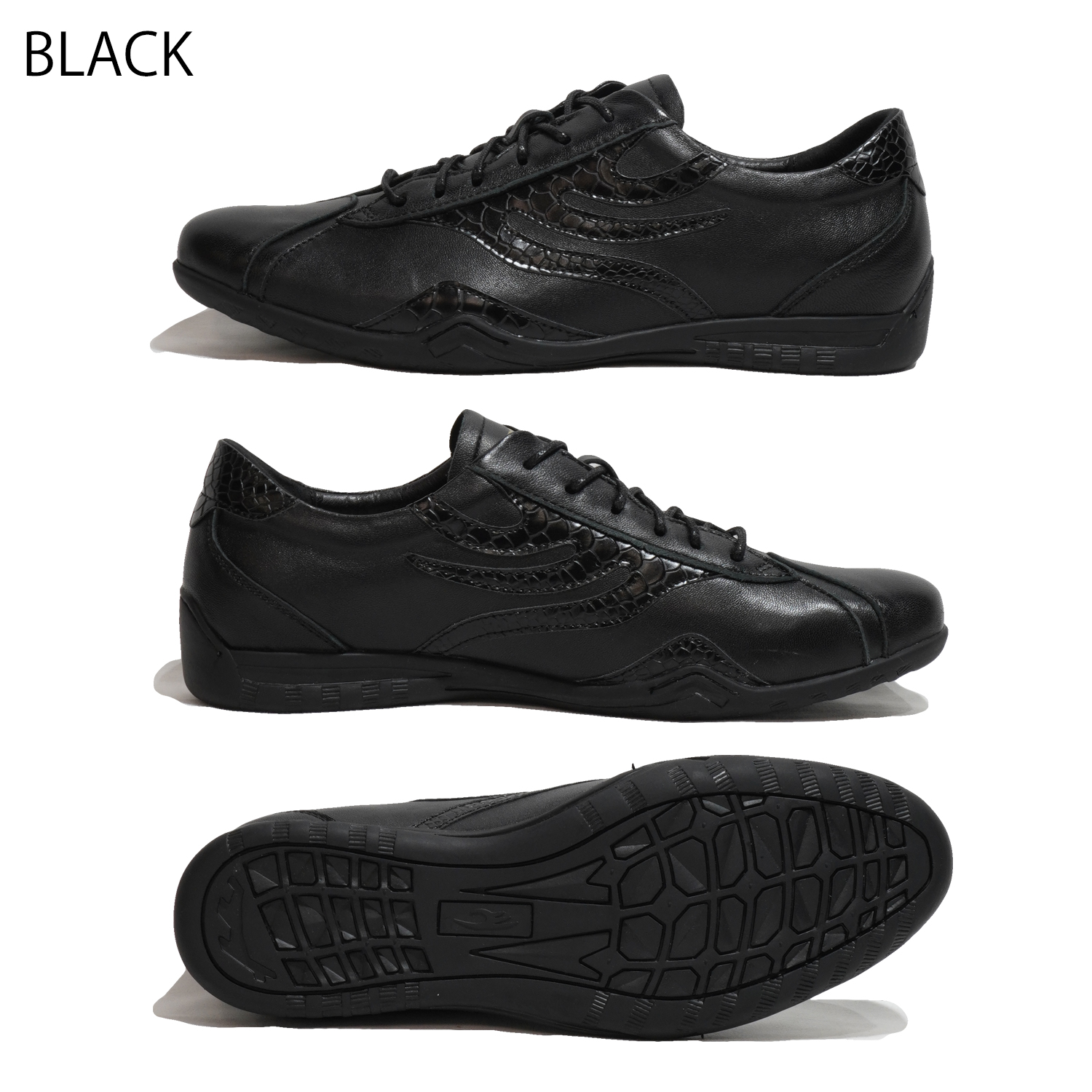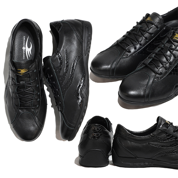ブランドライン、サイドそしてヒールタブにスネーク型押し素材を使用する斬新なマテリアルミックスが特徴。