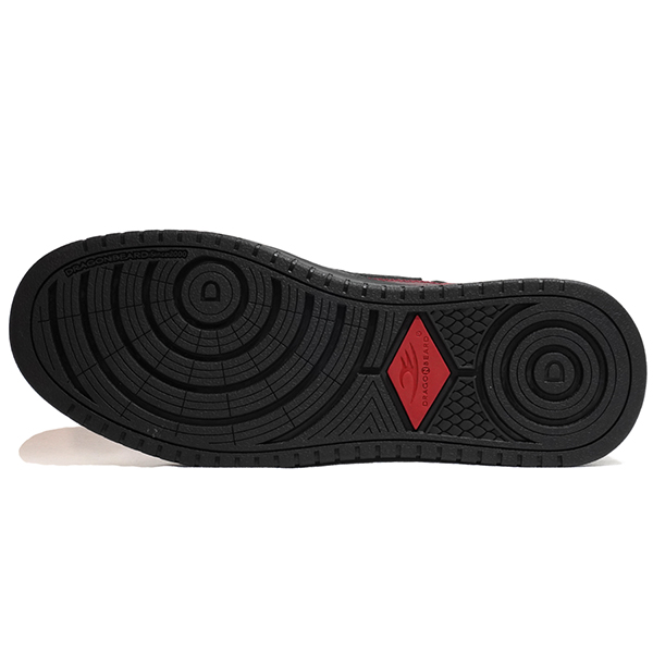 燃えるような紅と黒のコントラストが目を引く、DRAGON BEARDの「龍」をテーマにしたグラフィックデザインスニーカー。