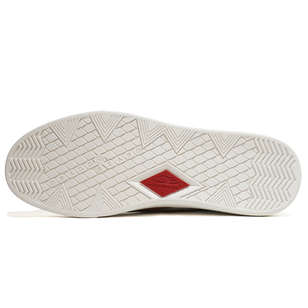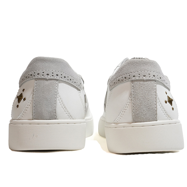 アッパーには滑らかなホワイトレザー、部分パーツにはには焦しレザーを採用。