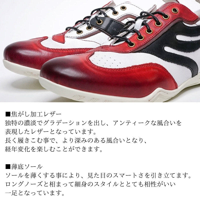 オイル加工や汚し加工を施した大人系のレザースニーカー。