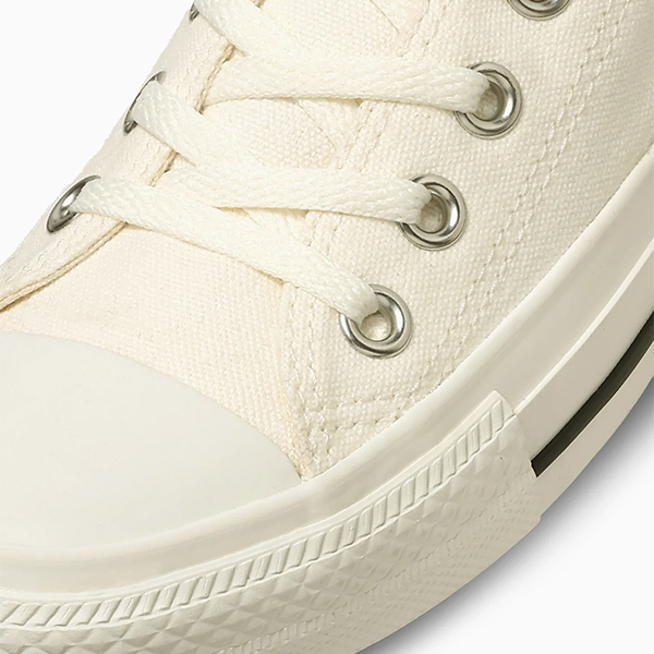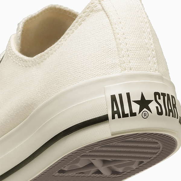 オールスターのディテールアレンジモデル。アッパーには洗い加工を施し、生成りのシューレースやテープを使用した洗練されたデザイン。モノクロのアンクルパッチを採用することで、落ちつきのある印象に。