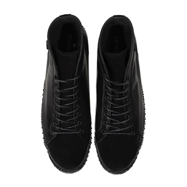 重厚感あるオイルワックスレザーと上質なベロアをコンビ使いしたハイカット。オイルワックスレザーは油分を多く含んだ革で、定期的にレザークリームで油分を補給することで、より深くムラ感のある色味へ変化します。
