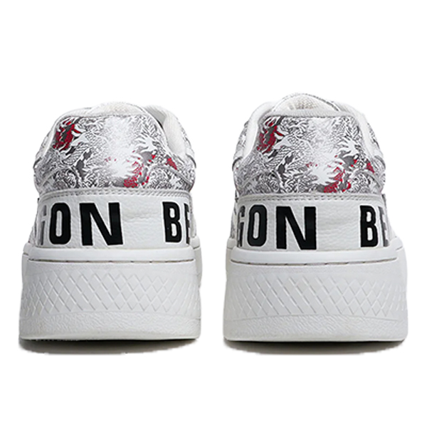 サイドには、DRAGON BEARDらしい流れるようなラインと、質感の異なる素材を組み合わせたパネルを配置。ヒール部分にはブランドロゴをプリントし、後ろ姿にもアクセントを加えています。