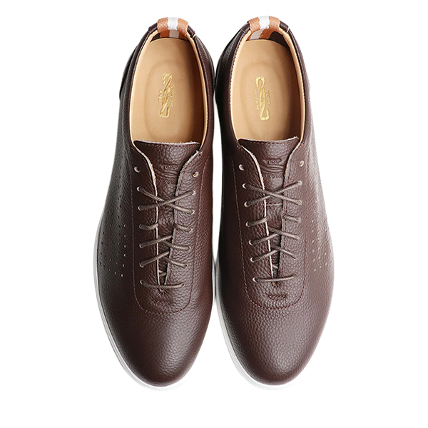 トップセブンの人気定番モデル【T7-At260-S】 は、“オーセンティックシリーズ”の代表的なモデル 。長年にわたって愛される理由は、そのミニマルな外観と汎用性。アッパーに上質なフルグレインレザーを1枚革で使用。ドレスシューズを思わせるスリムな木型から生まれたスマートなロングノーズが特徴で、大人スニーカーの教科書ともいえる王道のフォルムが人気の秘密です。