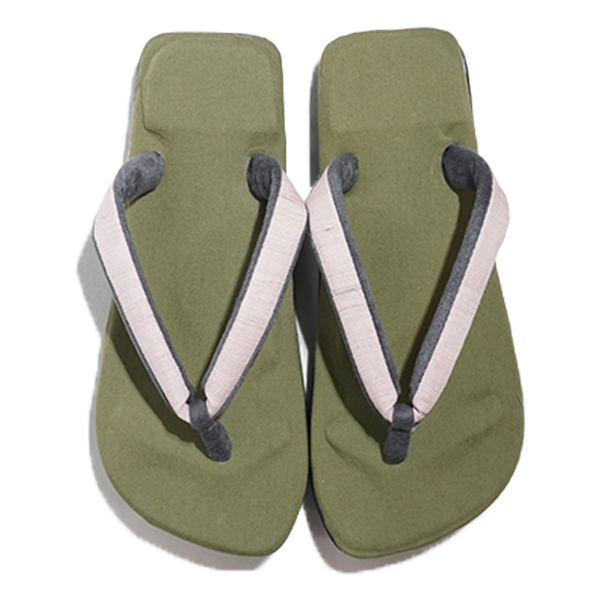 奈良月ヶ瀬の「大和茶」緑茶もしくは、ほうじ茶で染めた生地(綿麻)を使用しております。お茶で染め上げた生地は、アンティークのような色合いが魅力の色合いに仕上がりました。また、お茶に含まれるカテキンには抗菌効果も期待できる一足です。生産数限定の雪駄です。欧米のフットベッド・インソールを参考に、構造的なクッションを付ける事で足ズレ防止と衝撃吸収機能を伴ったRe:休タイプ。大和工房完全オリジナルデザインの足指に沿ったサンダルライクの形状で、親しみやすいスタイルの新しい雪駄です。
