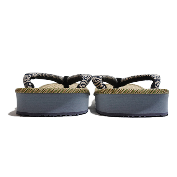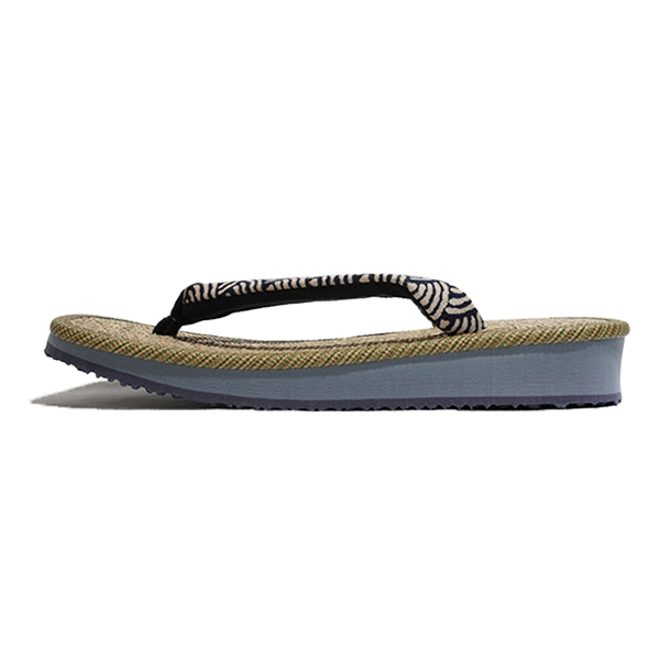 凹凸がありさらりとした履き心地が人気のマライ草天板に、青海波柄の花緒を合わせた雪駄です。馬蘭草は耐久性に優れ、パナマ織は風通しの良い織り方で、擦れに強い事で雪駄の定番品としては根強い人気があります。また、青海波柄は「無限に広がる穏やかな波に未来永劫と、平和な暮らしへの願い」が込められていると言われる、縁起の良い吉祥文様です。どちらも古くから根強い人気を誇る伝統的な素材・柄を合わせた「伝統×伝統」の雪駄。渋くて粋な雪駄の底材は、軽量でクッション性の高いEVA素材を使った滑りにくいデザインの大和工房オリジナルで、非常に履きやすくなっております。