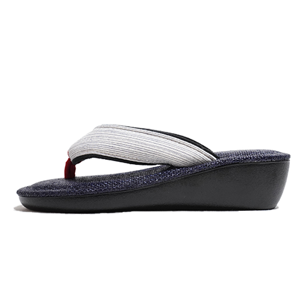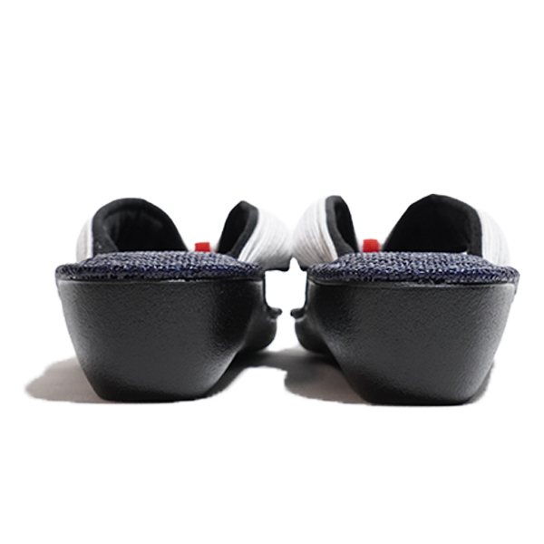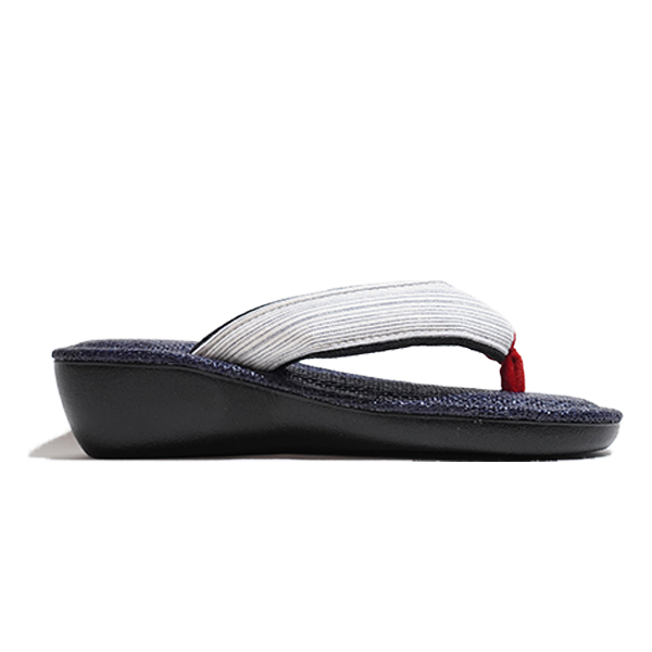 このしじら織を花緒に用いることで、全体のデザインを引き立たせ、足元に上品な印象を与えつつ、実用性を兼ね備えた一足に仕上げています。またヒールの高さは約4.5cm、太花緒を用いることで履いた時の安定感にも優れています。更には、天板の内部には衝撃吸収材、底はウレタンを使用しており、クッション性にも優れています。