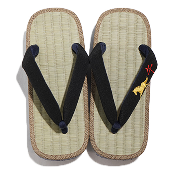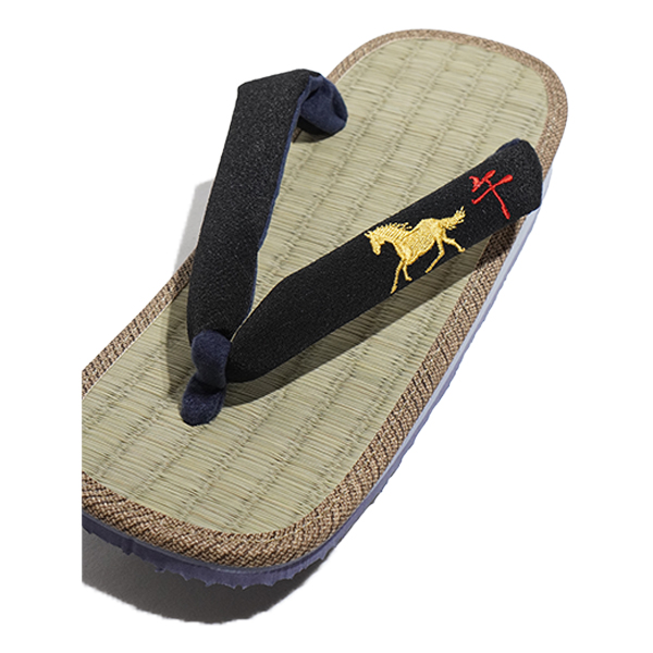 新しい年の始まりにふさわしい一足。花緒に干支「午」の刺繍をあしらった、縁起の良い雪駄をご用意いたしました。 天板には天然素材のい草を使用しており、通気性に優れ、季節を問わず快適にお履きいただけます。 渋みのある雪駄の底材には、軽量でクッション性に優れたEVA素材を採用。滑りにくい設計の大和工房オリジナル仕様で、履き心地の良さにもこだわりました。 手作業について 大和工房の雪駄は、すべて職人の手作業にて製造されております。そのため、製造工程上の個体差などが生じますが、予めご了承頂けますようお願い致します。