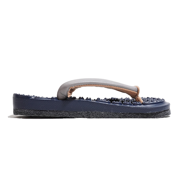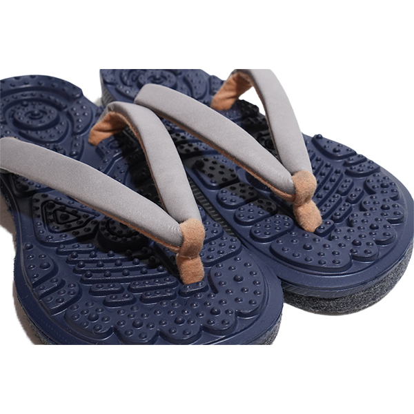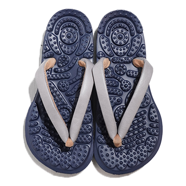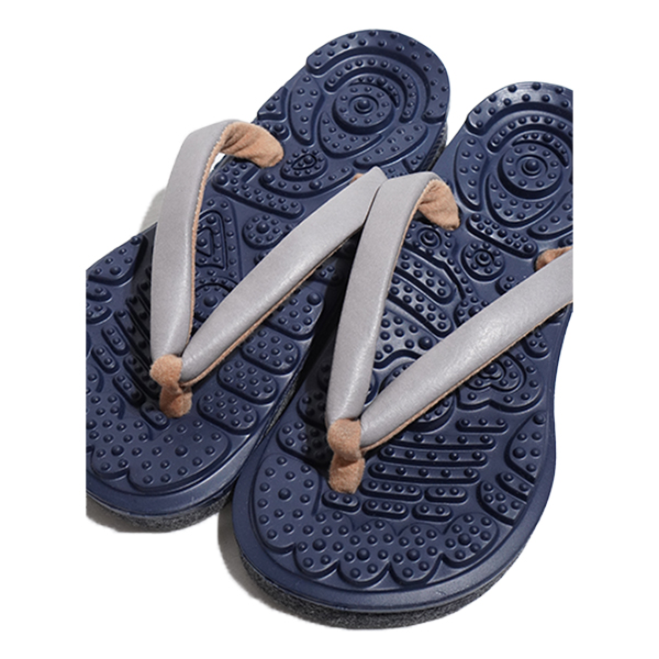 お部屋履きの雪駄はどうでしょうか。足裏の反射区を参考にデザインされた凹凸のある天板は、長時間の立ち仕事で疲労した足に心地よい刺激を与えます。反射区を刺激することで全身のバランスが整えられ、機能回復をはかると供に、リラクゼーション効果を促します。そもそも雪駄は、鼻緒に指を入れることで、足指の股が刺激されて健康に良いと言われています。このダブル効果で、お部屋に帰った疲れた足を癒やしてあげましょう。