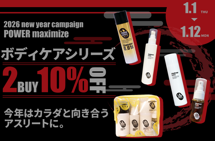 大好評発売中のパワーマキシマイズボディケアシリーズの特別企画を実施します。 ボディケアシリーズを2つ以上ご注文でご利用いただけるクーポンを期間限定で発行します! いつものお気に入りアイテムや気になるアイテムをこの機会に是非お試しください。 キャンペーン期間:2026.1.1~1.12
