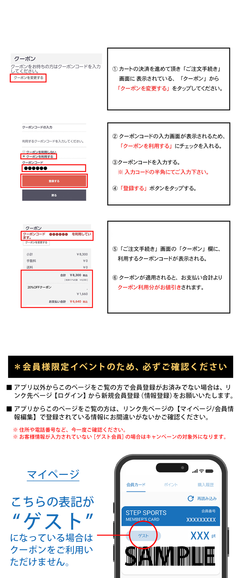 ※本クーポンは、StePアプリ会員様(情報登録会員)のみがご利用いただけるクーポンとなります。一部対象外の商品があります。