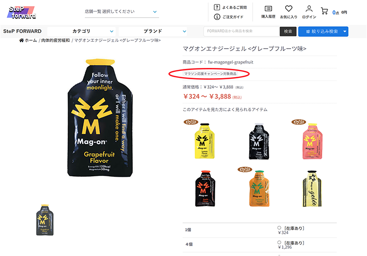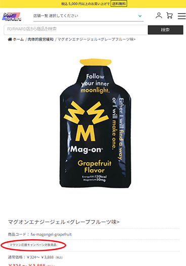 「マラソン応援キャンペーン対象商品」のタグが目印!