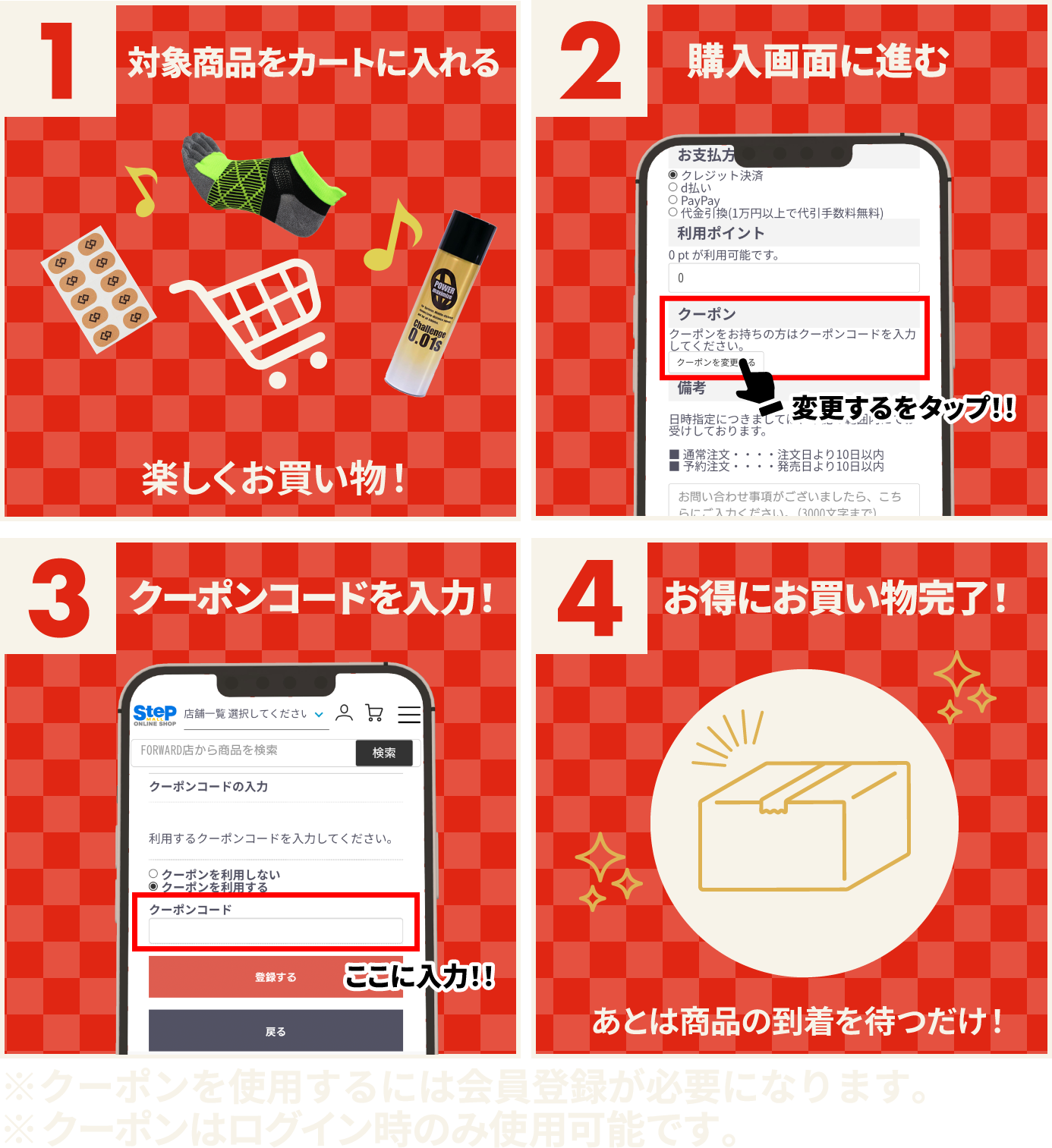 あけましておめでとうございます。 今年もSteP Forward Onlineをよろしくお願いいたします。 アスリートの皆様の競技生活に役立つアイテムをこれからもご提供していきます! さて、新年のスタートを応援するお得なクーポンを発行しました。 「馬九行久(うまくいく)」にあやかって、ケア・パフォーマンスアイテムでコンディションを整え最高のスタートダッシュを決めていきましょう!