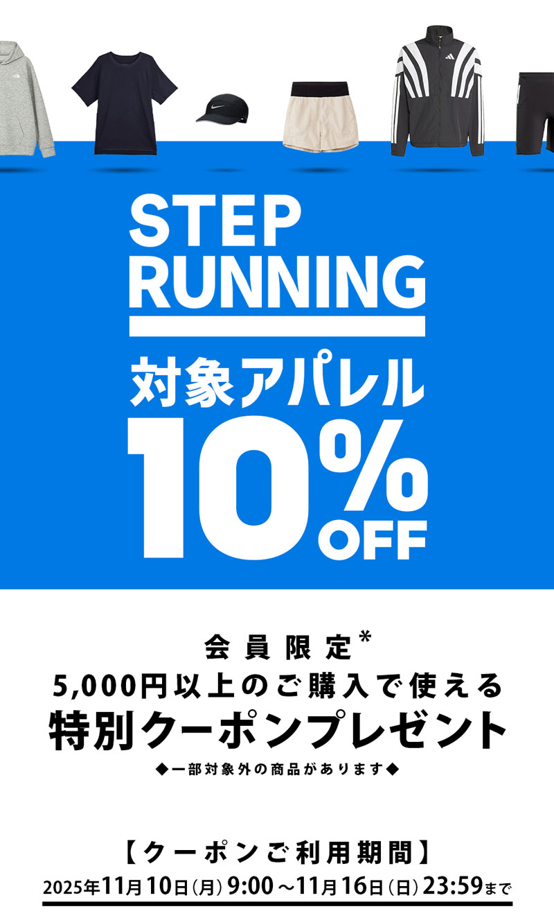 ※本クーポンは対象商品のみご利用いただけます。対象商品の合計金額が5,000円を超えた場合にクーポンをご利用いただけます。クーポン対象の商品には“アパレルクーポン対象商品”の表記があります。