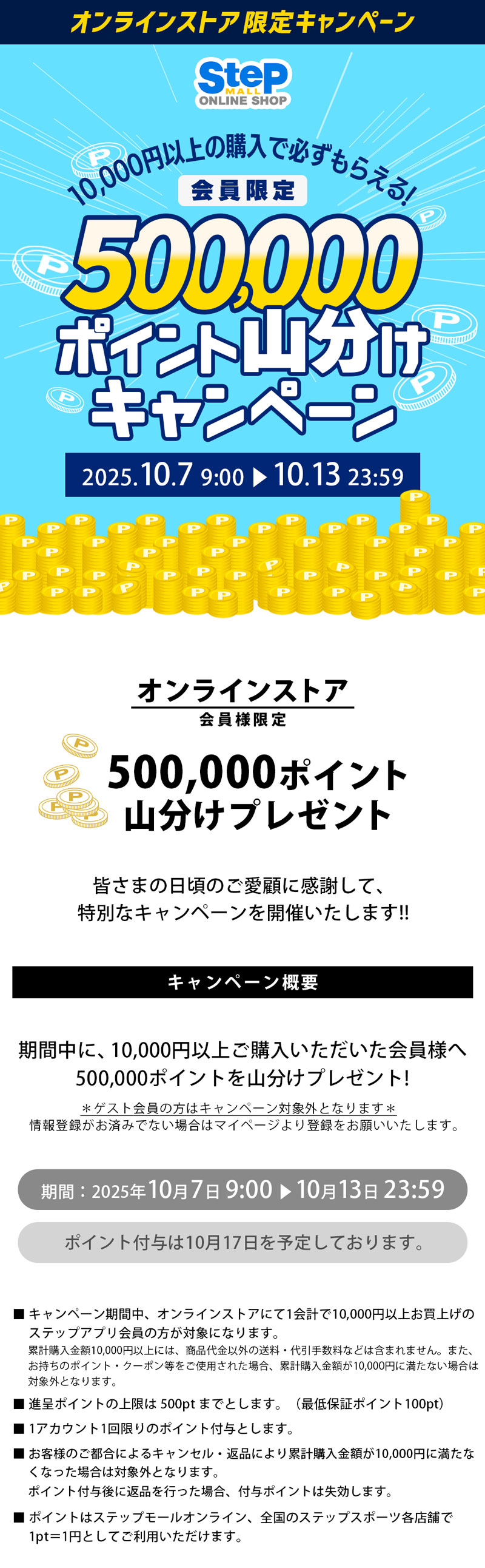 【SteP MALL ONLINE SHOP】500,000ポイント山分けキャンペーン