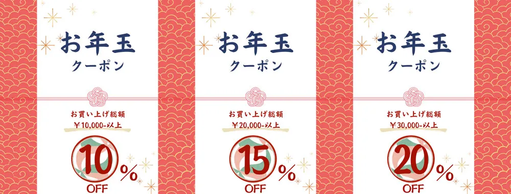 ※本クーポンは対象商品のみご利用いただけます。クーポン対象の商品には“お年玉クーポン対象商品”の表記があります。