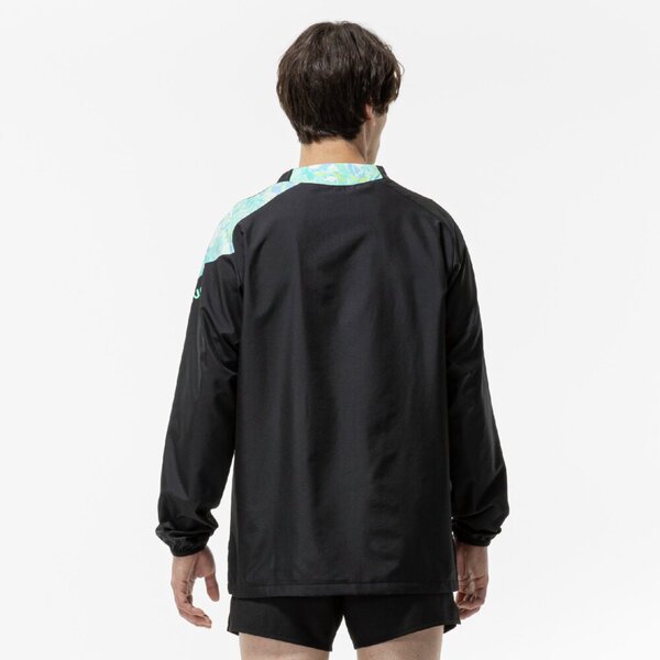 片袖に入ったグラフィックが特徴で、鮮やかな色合いが気分をあげてくれるデザインとなっており、寒い日の移動用ウエアとしても適しているアイテムです。