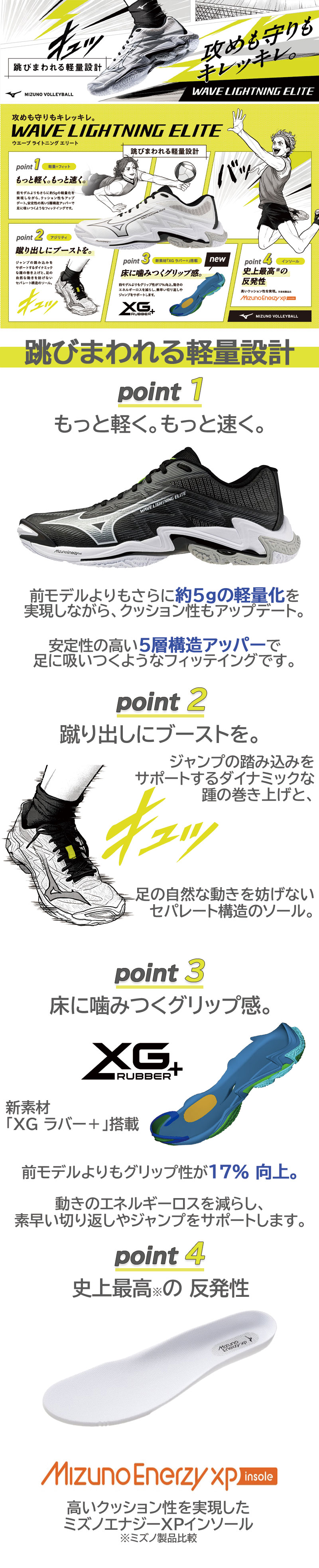 また、アウトソールに新搭載の新素材XGラバー+はスピードのある動き、激しい動きをサポート。