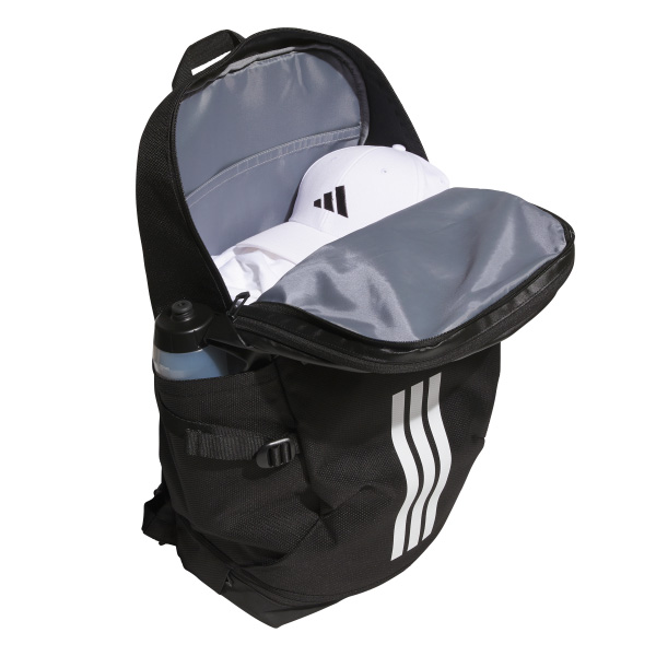内側のノートPC用ポケットで電子機器を収納出来、サイドとフロントのジップポケットにはボトルなどの必需品を手の届きやすい場所に収納できる。